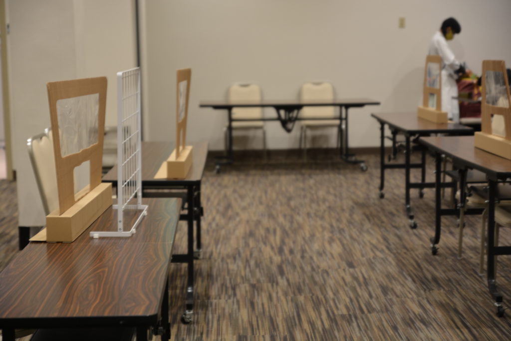 小島:前乗りで入って、机のサイズを計測したり、ブースを作ったり、そういった地味な作業もね。