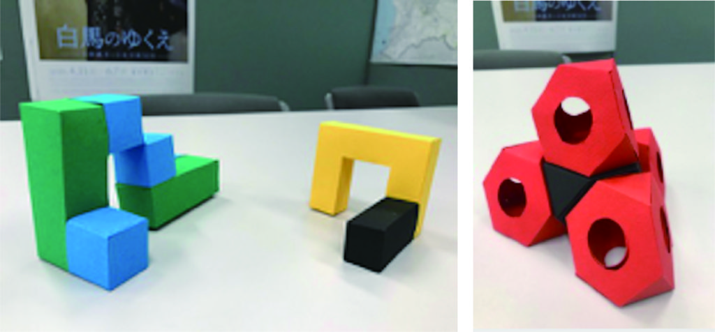 「はい、その型紙をダウンロードして厚紙などに印刷するとイサム・ノグチの作品である《オクテトラ》などのペーパークラフトを作ることができるようになっています。香川県立ミュージアムの2階のチケットカウンターにも厚紙にコピーしたものを置いていますよ。これはかなり好評ですね」